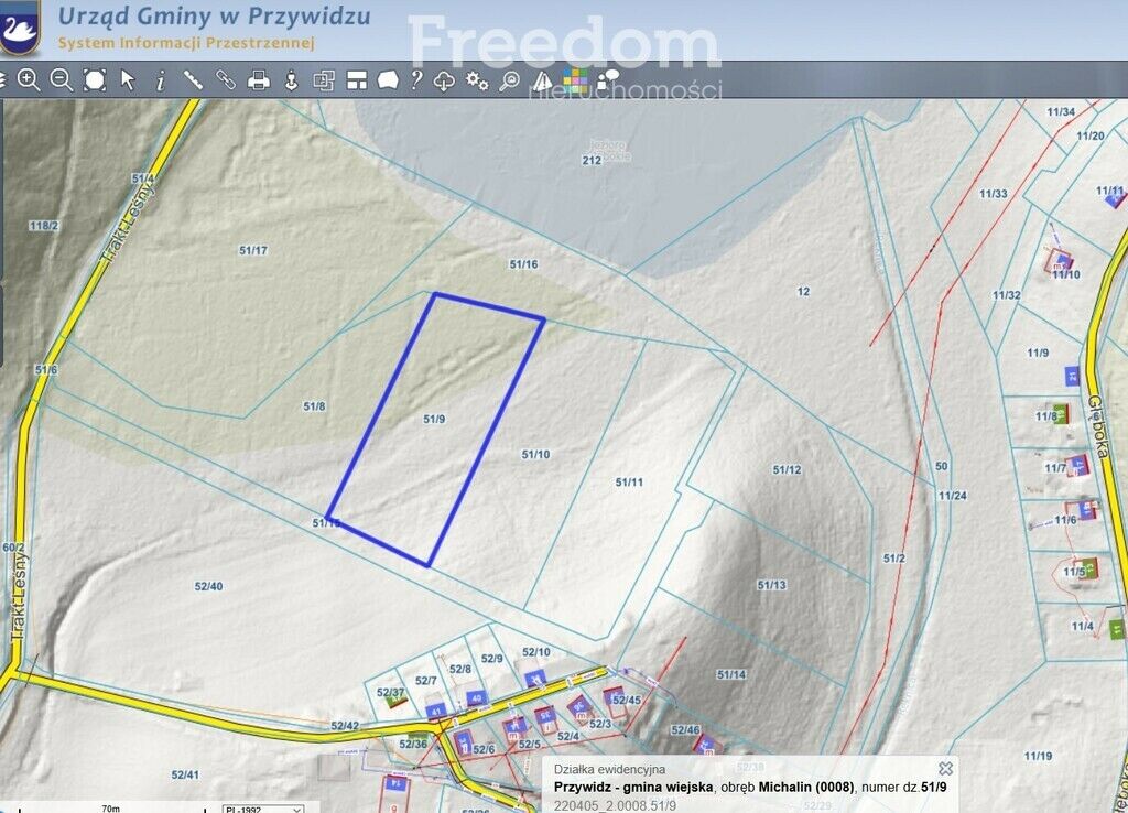 - działka w obrębie Michalin, gmina Przywidz o numerze 51/9 o