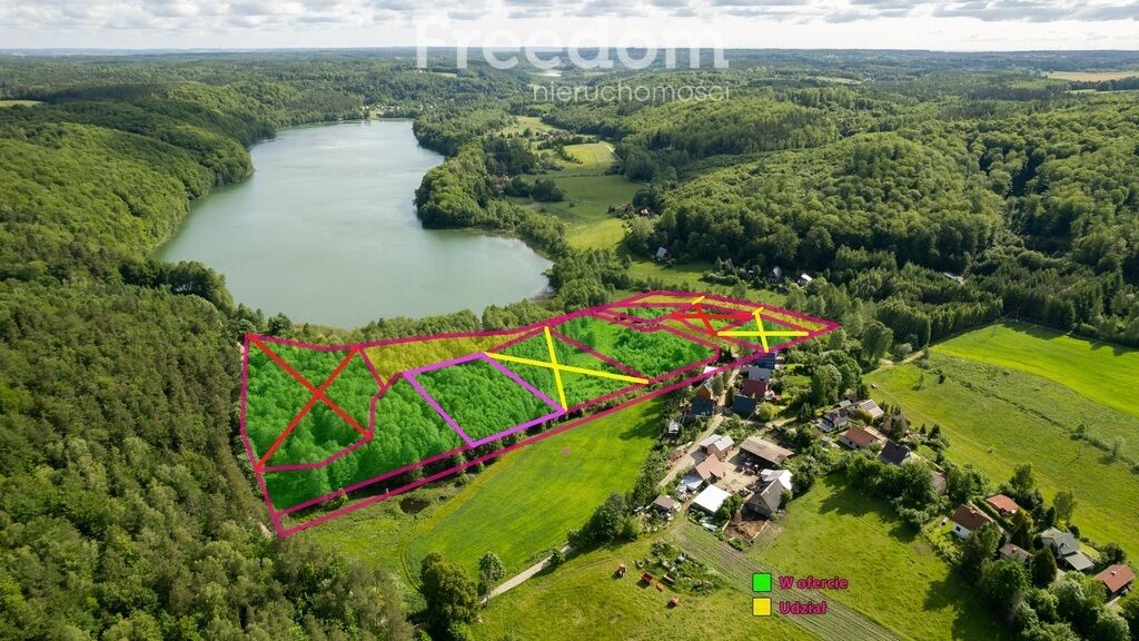 - atrakcyjna, duża działka z pięknym widokiem na jezioro;